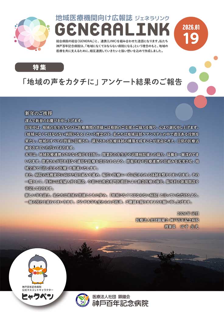 また、「生命を守る医療」のみならず「生活の場を支える医療」を目指して、皆様方の貴重なご意見を賜りながら、より良い、そして心の通った支援ができればと存じますので、今後とも、ご指導、ご鞭撻の程宜しくお願い申し上げます。