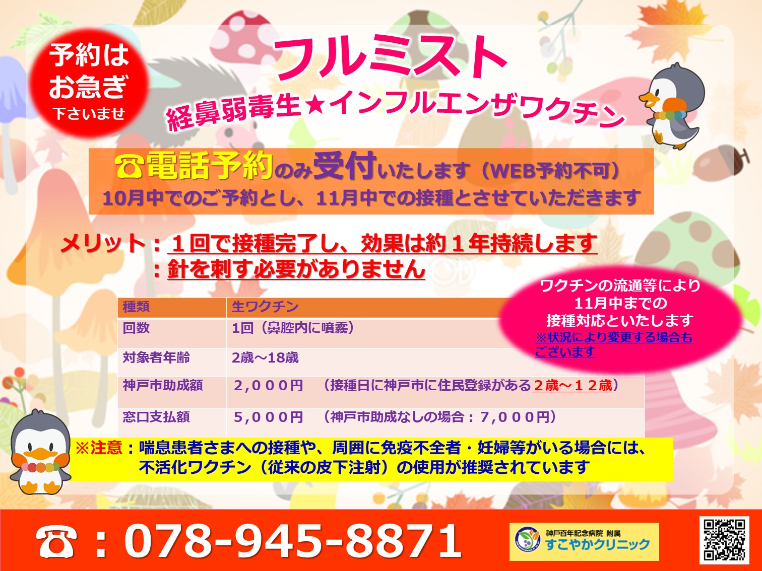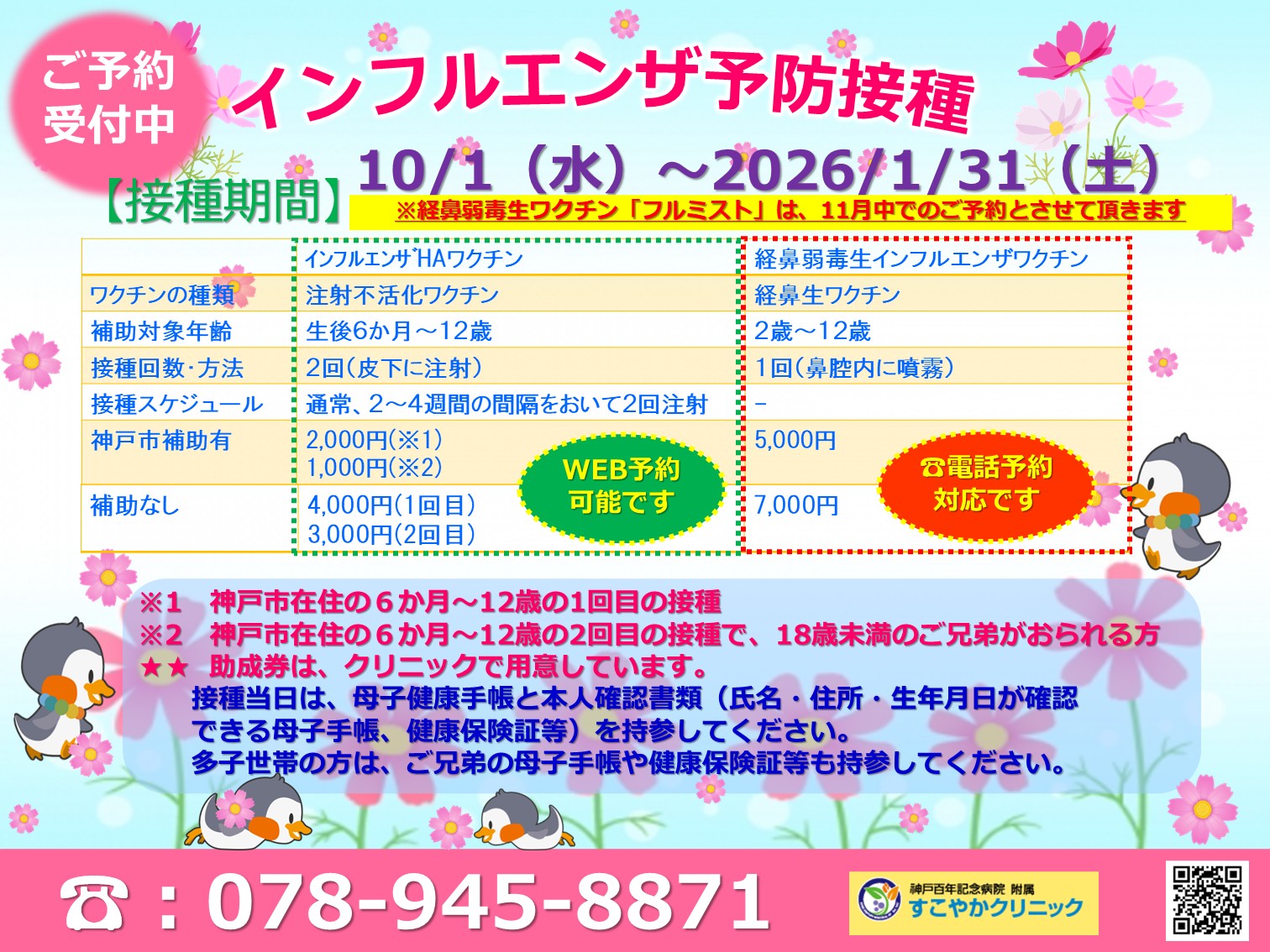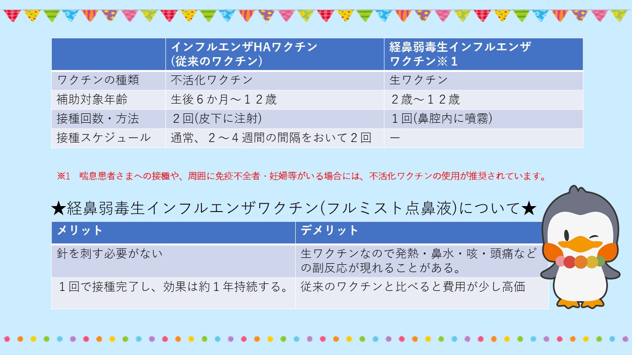 「インフルエンザ」予防接種のご予約を受付しています