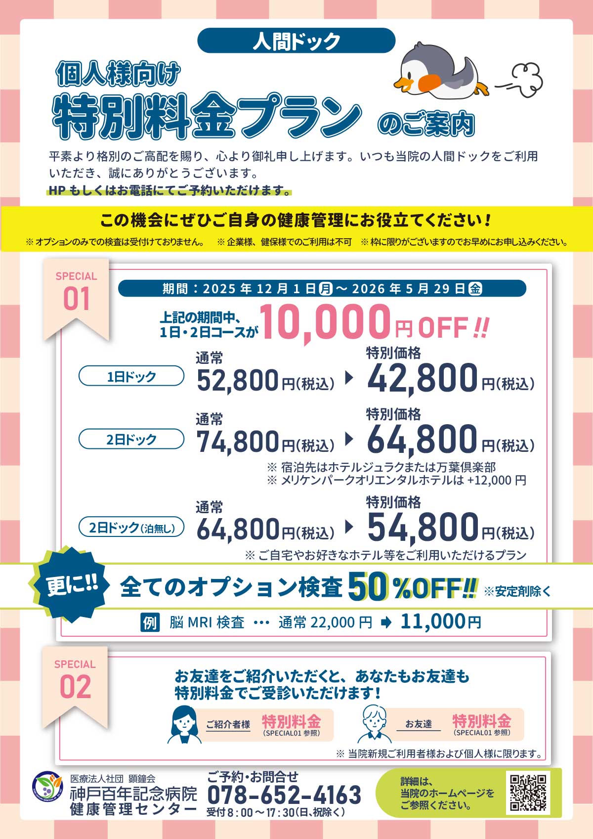 【人間ドック】新規ご利用者様および個人向け 特別料金プランのご案内