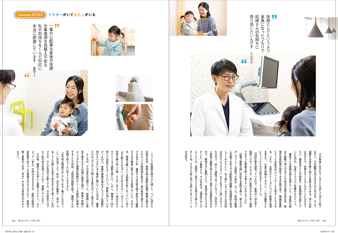 産科・婦人科部長の下川先生は、患者さんに寄り添う診療でたくさんの女性に頼れるドクターとして活躍をし、雑誌などでも紹介をされていました。当院でも患者さん一人ひとりの気持ちに家族のように寄り添い診療に取り組んでいきます。ぜひお気軽にご相談ください。